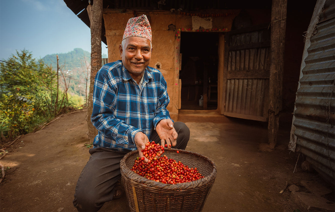 In the heights of the Himalayas, farmers carefully pick Arabica beans for every cup of Kamma, so you can enjoy rich flavors and the unique spirit of the mountains.